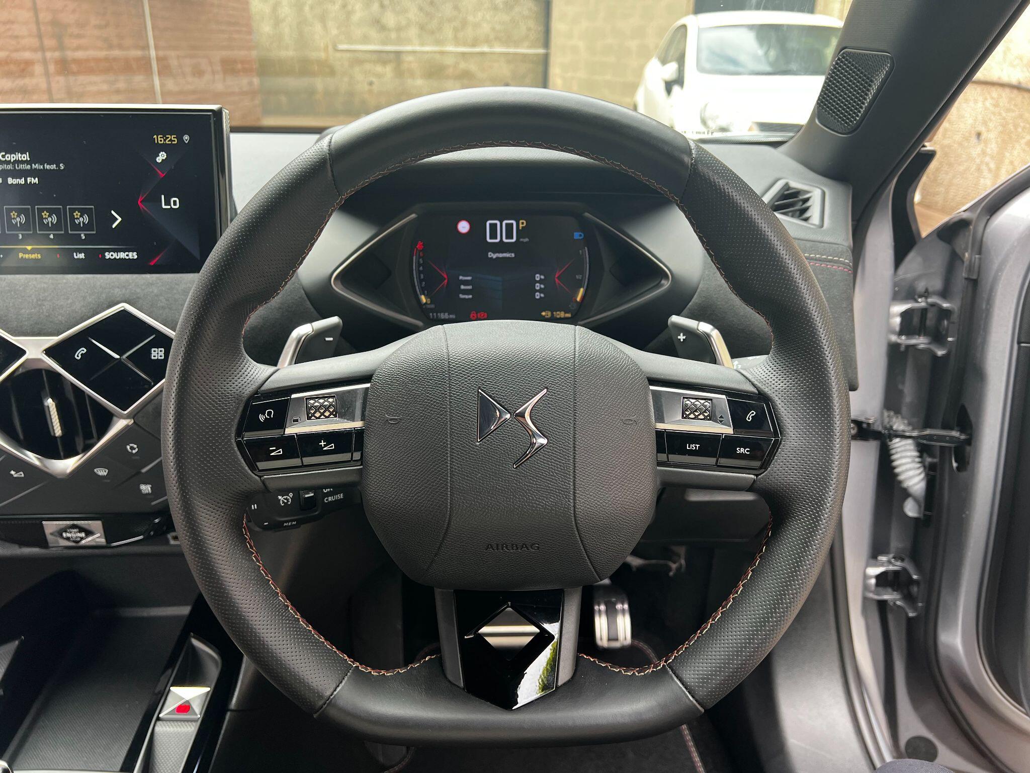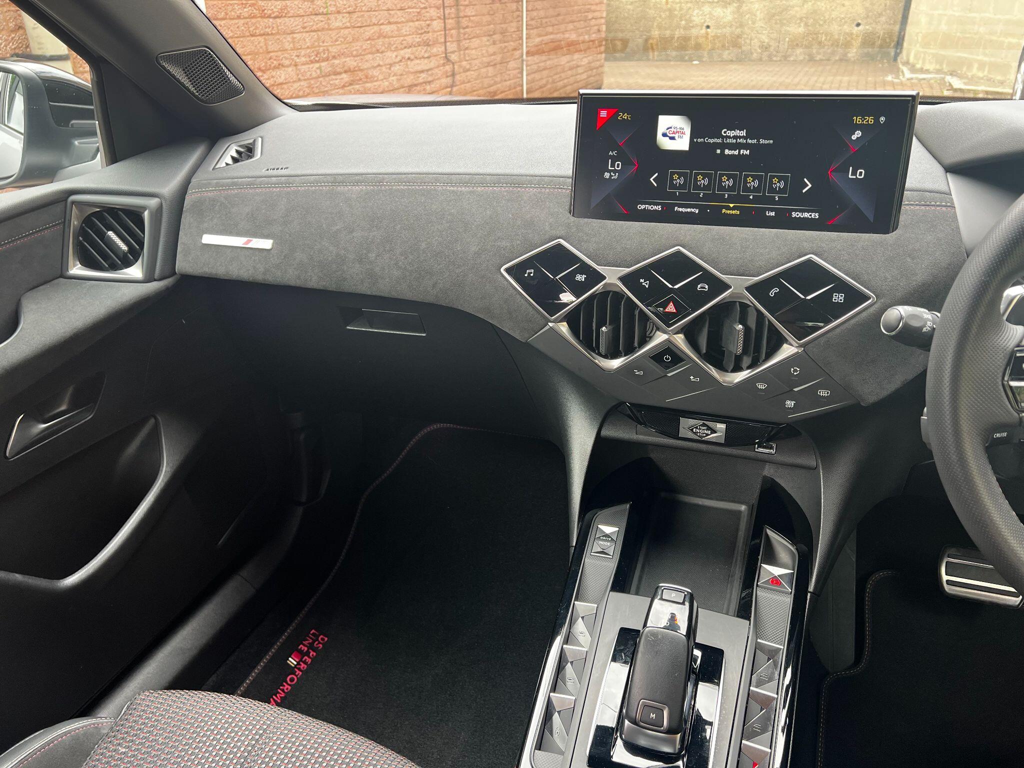 This 2022 DS 3 CROSSBACK PureTech Performance Line + presents an exceptional ownership proposition with its remarkably low mileage of just 11166 miles, having had only one owner since new. This stylish compact SUV, powered by a 1.2L petrol engine and meeting Euro 6 emission standards, offers a refined driving experience. Inside, you'll find the convenience of the DS Connect Nav System which includes climate control, alongside Mirror Screen functionality that seamlessly integrates your Android Auto and Apple CarPlay devices. For effortless parking, front parking sensors provide assistance, while Bluetooth handsfree and media streaming keep you connected and entertained on the go. The automatic headlights ensure optimal visibility in varying conditions.