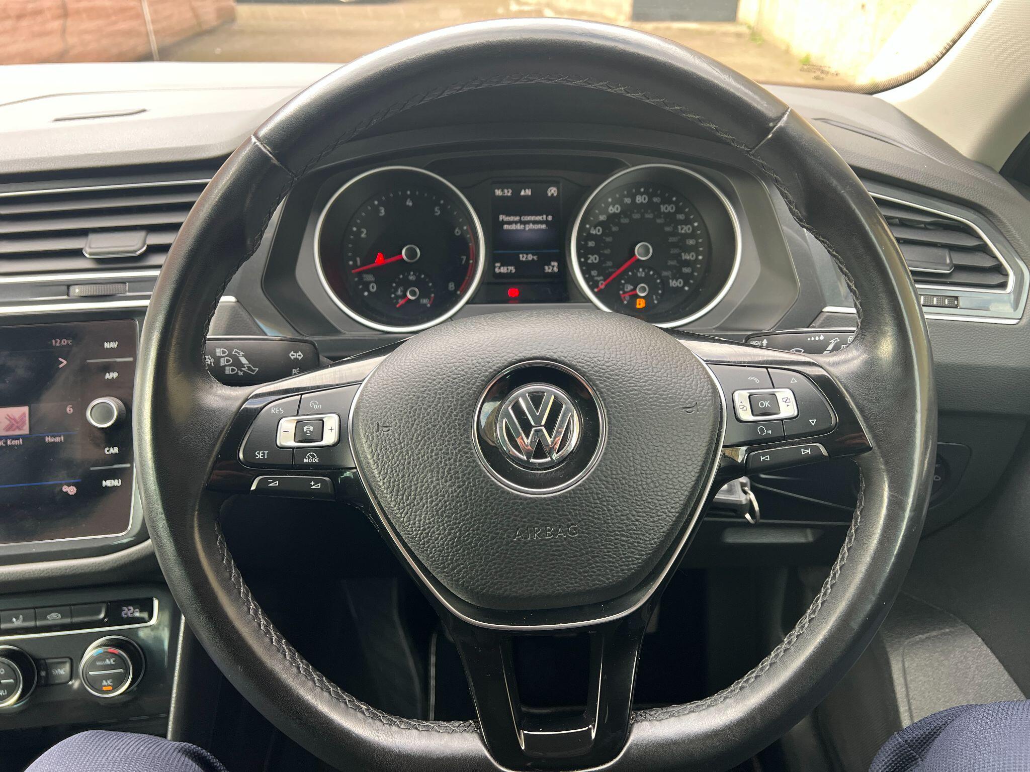 This 2018 Volkswagen Tiguan TSI SE Navigation has been cherished by just one owner, offering a superb example of this popular SUV. Powered by an efficient 1.4 litre Euro 6 compliant petrol engine, this model boasts a 0-62mph acceleration time of 9.2 seconds. Inside, you'll find the user friendly Composition Media System complete with Bluetooth connectivity, and seamless integration with your smartphone via Car Net App Connect, supporting both Android Auto and Apple CarPlay. Long journeys are made more comfortable with the 3Zone Electronic Air Conditioning and Adaptive Cruise Control, while parking is made simple thanks to the front and rear parking sensors.